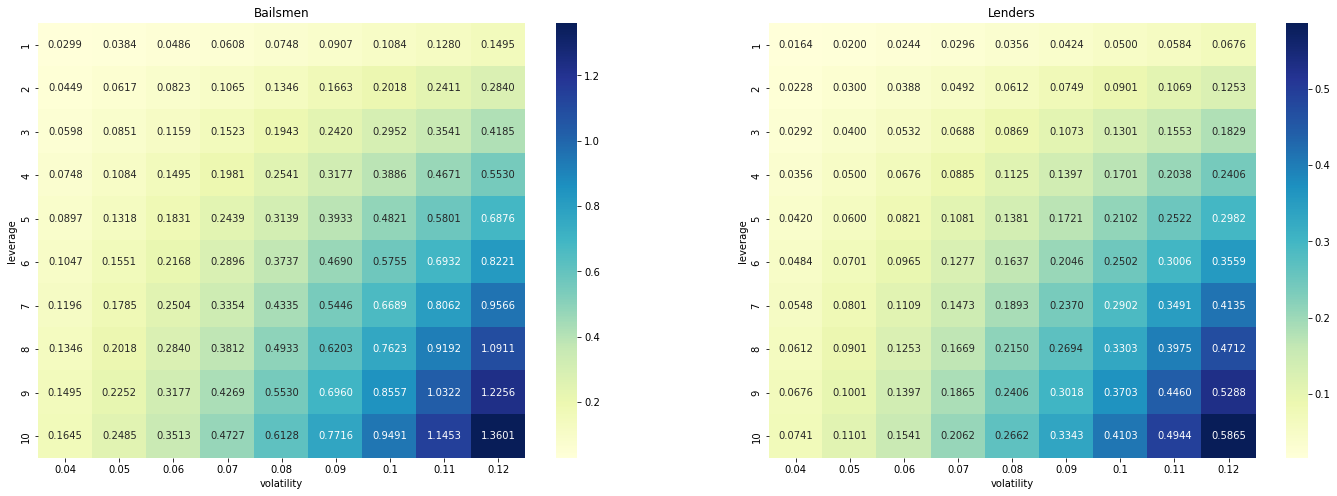 <figure><img src="https://399939398-files.gitbook.io/~/files/v0/b/gitbook-x-prod.appspot.com/o/spaces%2F-MK_3P6RnPHvv_Gsa_wJ%2Fuploads%2FLLFUYq5TH7Kl1iNN7b8Q%2Fimage.png?alt=media&#x26;token=18ff40eb-561b-421a-9be6-b4ea8a2f3141" alt=""><figcaption><p>How much borrower pays to bailsmen and lenders given the leverage and portfolio risk (volatility)</p></figcaption></figure>